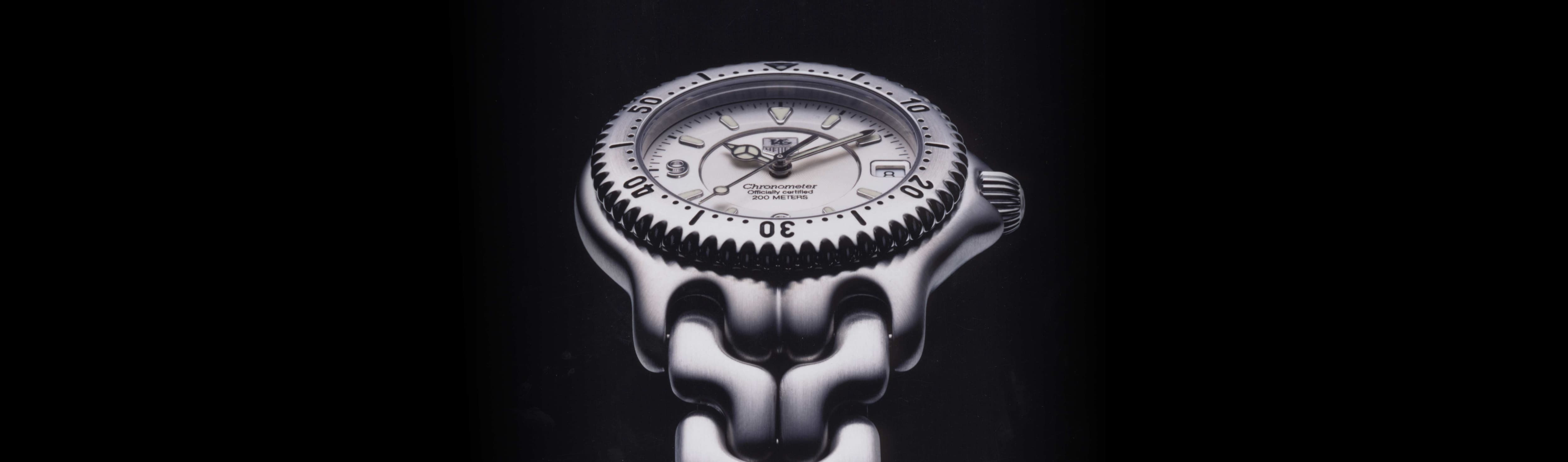 TAG Heuer’s strategy with the new S/el collection was to take the range of dive watches upmarket, with the collection being positioned above TAG Heuer’s mainstay models of the day – the 1000 and 2000 Series dive watches and the colorful Formula 1 collection. The idea behind the S/el collection was that it was “designed to be worn with a diving suit as well as a dinner jacket” and until the arrival of the 6000 Series in the mid-1990s, the S/el was the flagship of the TAG Heuer range.